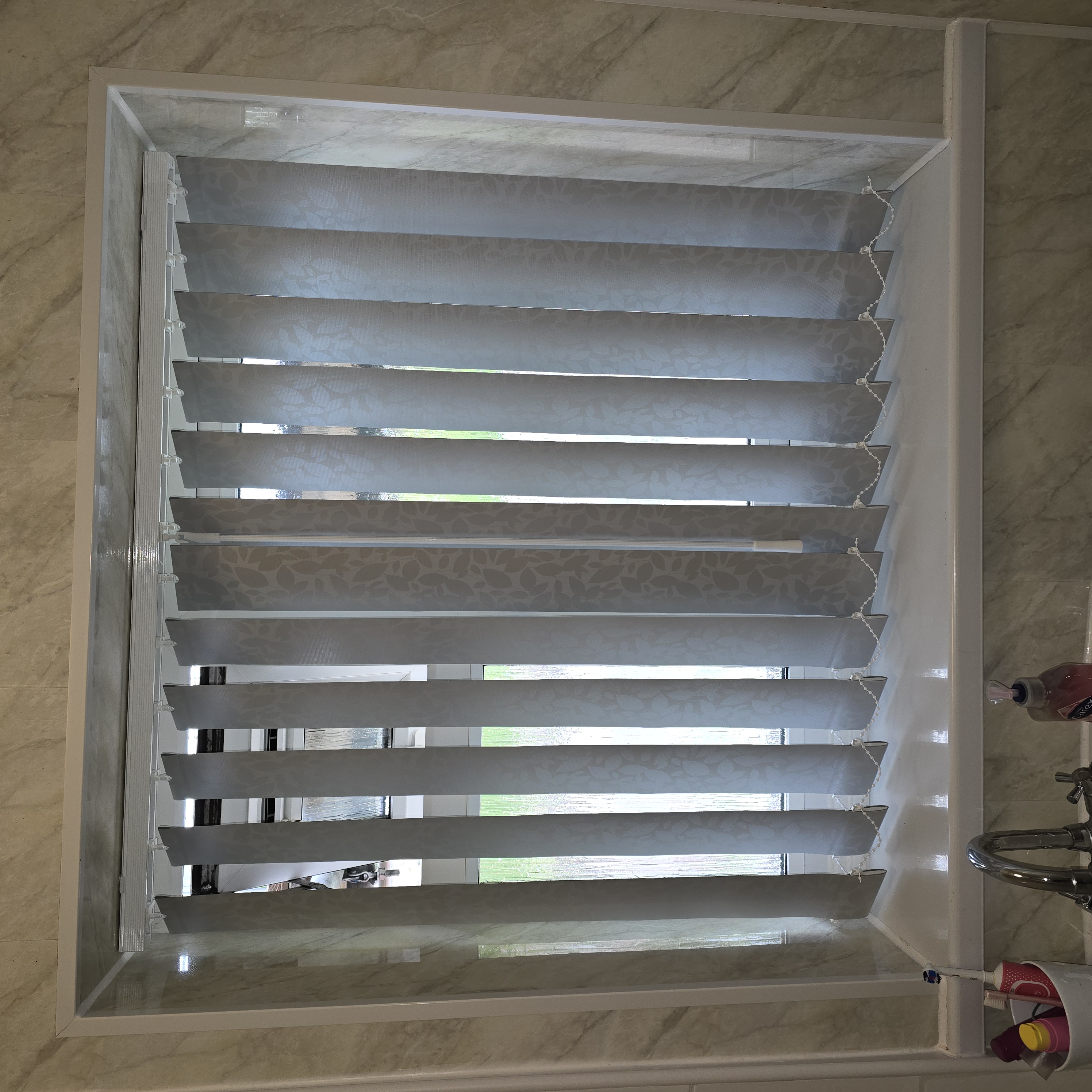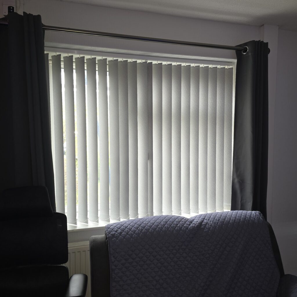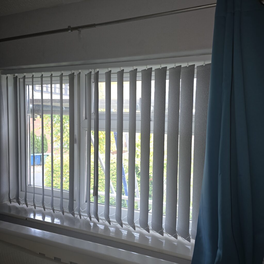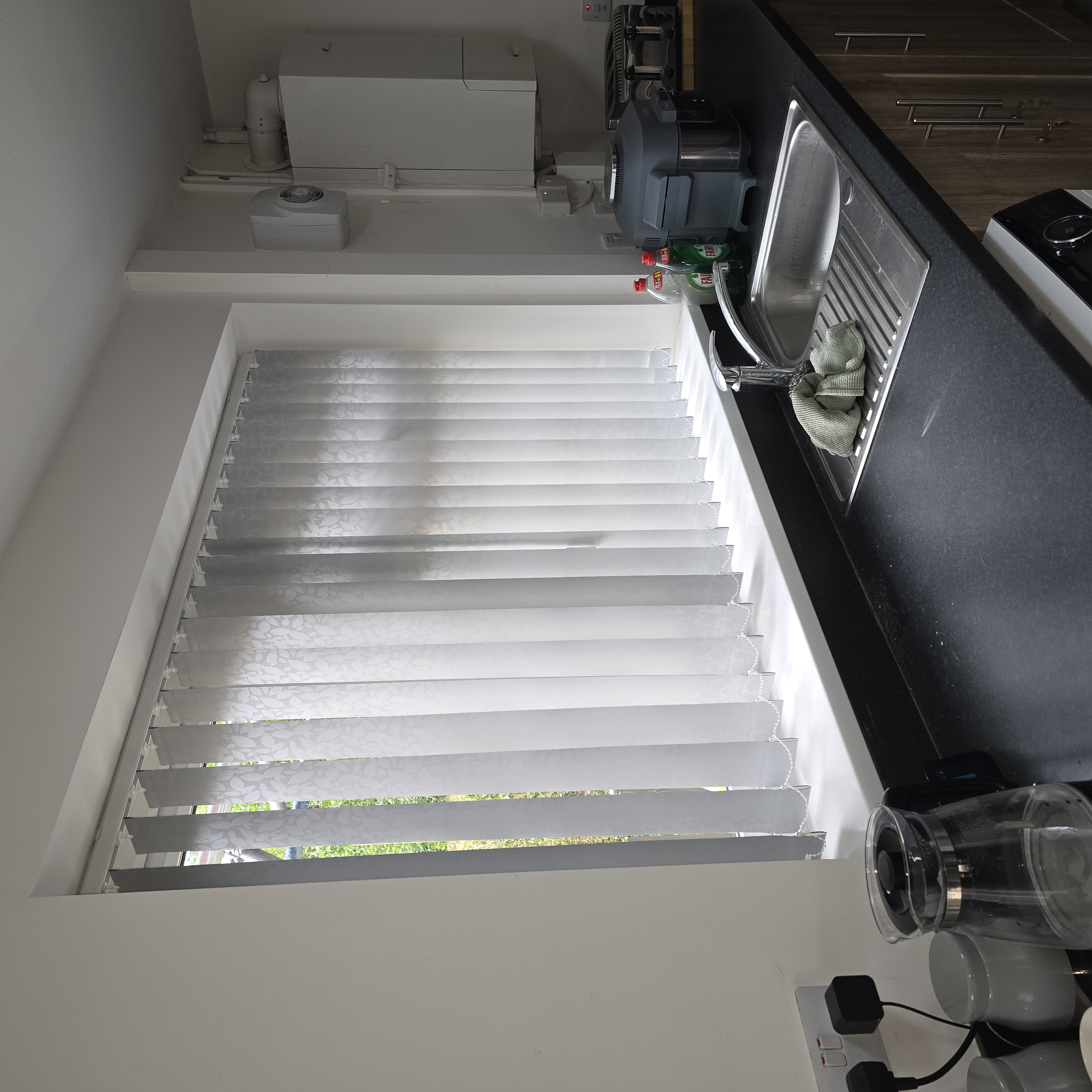 2 sets of waterproof ones for the kitchen and upstairs bathroom and 3 sets of blackout blinds for both bedrooms and stairs.